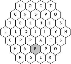 The shaded E and the six letters surrounding it spell APPEASE which matches one of the clues below.