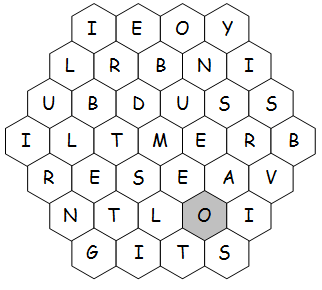 The shaded 0 and the six letters surrounding it spell ISOLATE, which matches one of the clues below.